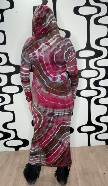Step into effortless style with our tie-dye hooded maxi dress, the perfect mix of cozy comfort and bold bohemian vibes. Designed with a flattering bodycon silhouette, this button-down maxi dress hugs your curves while giving you room to move. The long sleeves and soft jersey fabric (95% rayon, 5% spandex) make it ideal for fall and winter outfits, while the hoodie detail adds a unique, laid-back touch.