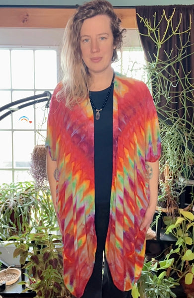 Elevate your everyday style with this hand-dyed tie-dye kimono duster, designed to make any outfit effortlessly chic. Made from 100% lightweight rayon, it drapes beautifully with a soft, flowy feel that flatters every body shape.
