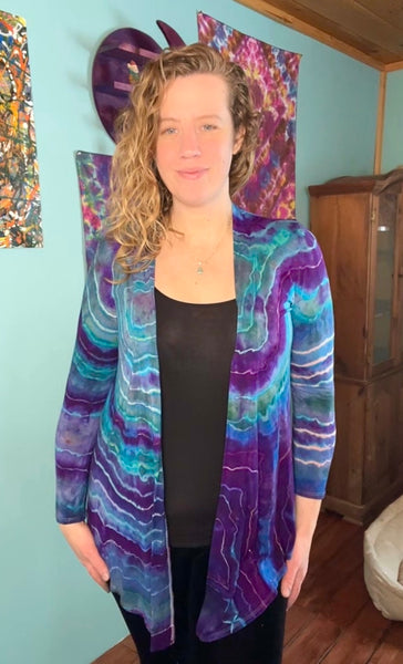 Wrap yourself in effortless boho vibes with this dreamy tie dye cardigan. Made from a soft and stretchy blend of 95% rayon and 5% spandex, it drapes beautifully and moves with you for all-day comfort. The high-low hemline and open-front duster style make it the perfect layering piece over dresses, tanks, or your favorite festival outfit. Long sleeves keep it cozy, while the unique hand-dyed pattern ensures every piece is one-of-a-kind.