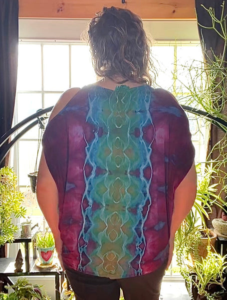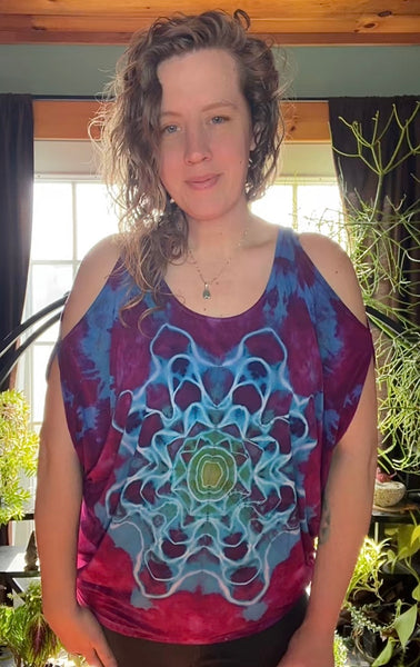 Cold Shoulder Oversized Tie-Dye Top – Keyhole Sleeve Detail